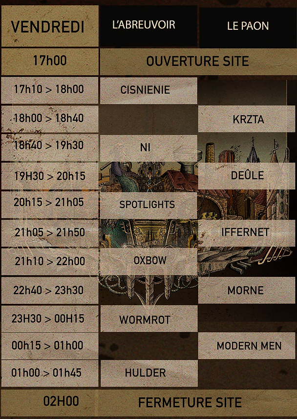 groupes concernés : OXBOW, KRZTA, CHIAROSCURO, CISNIENIE, JOUR J MENTAL, NI, PRINCESS THAILAND, CHAOS ET SEXUAL, MODERN MEN