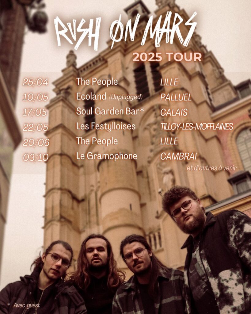 Après une date bien remarquée l’an passé au PAMFM en compagnie de MAL AUX YEUX et BAASTA, le quatuor RUSH ON MARS nous reviennent plus déterminés que jamais à nous envoyer sur la lune … enfin sur mars ! Et ce n’est pas Dimitri qui me contredirait, comme en témoigne cette entrevue qu’il nous a gentiment accordé !