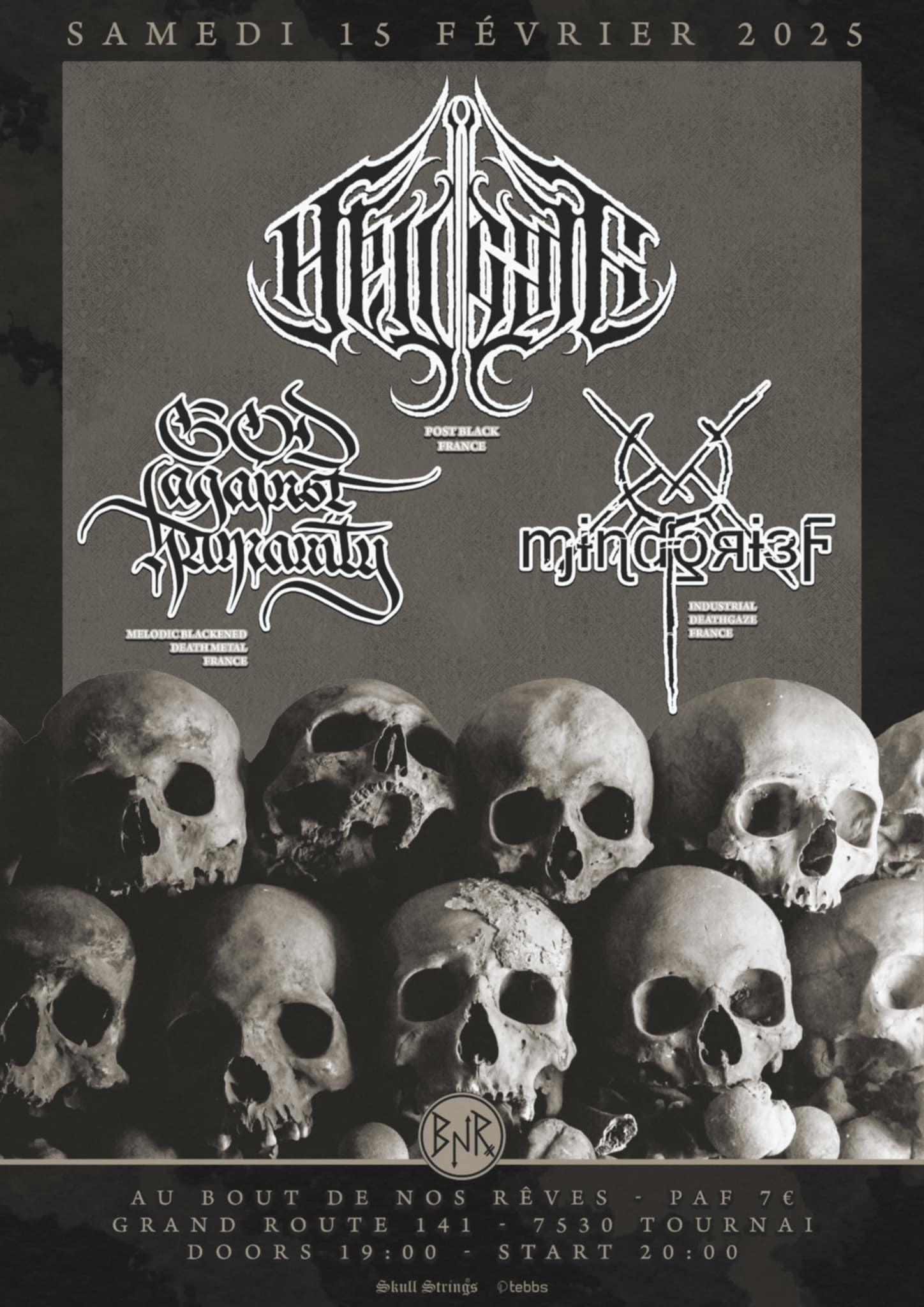 SAM 15 FEV 2025 – HELLGATE + GOD AGAINST HUMANITY + MiNDGRiEF « Industrial Deathgaze set » @BNR, Tournai BE